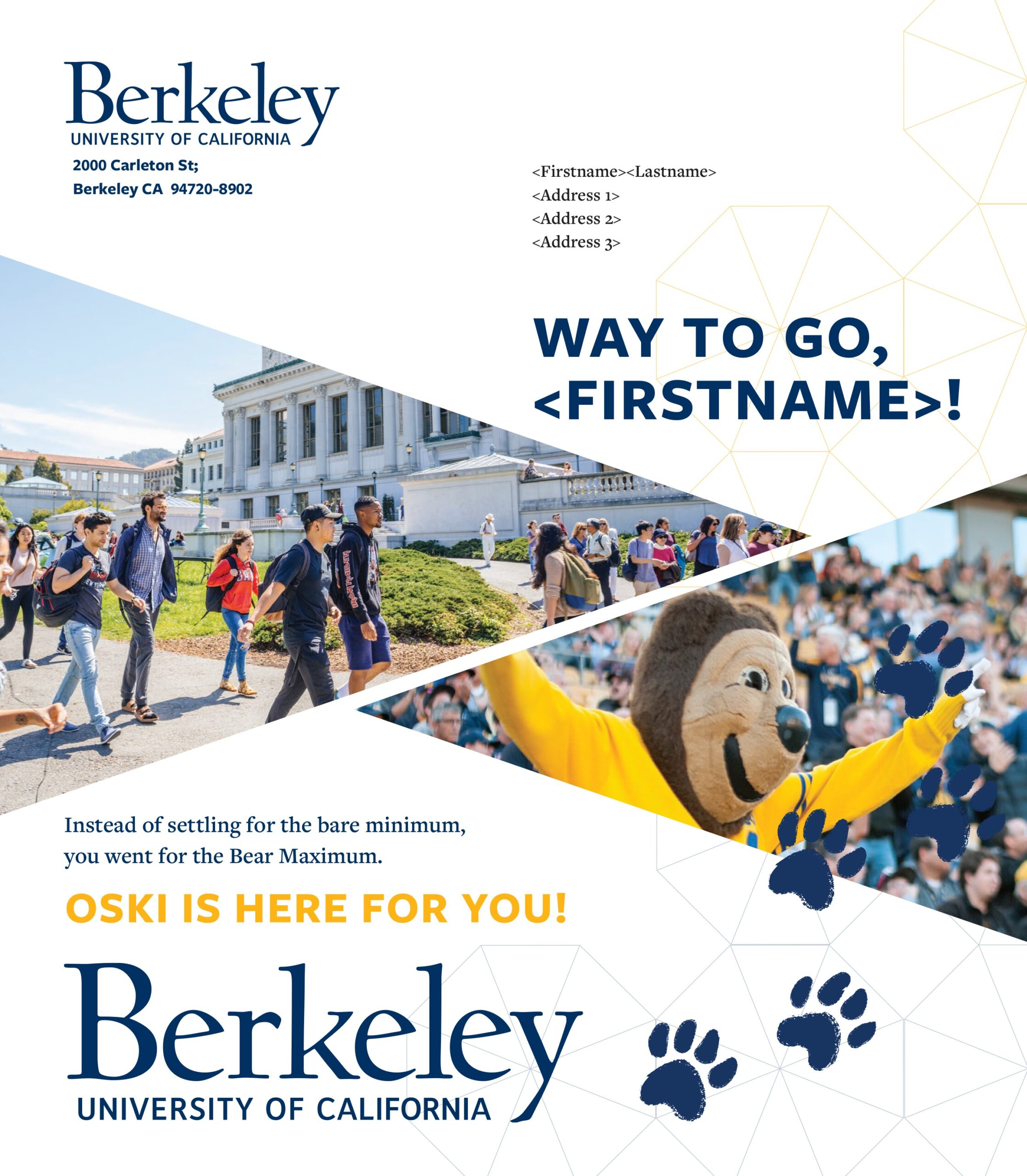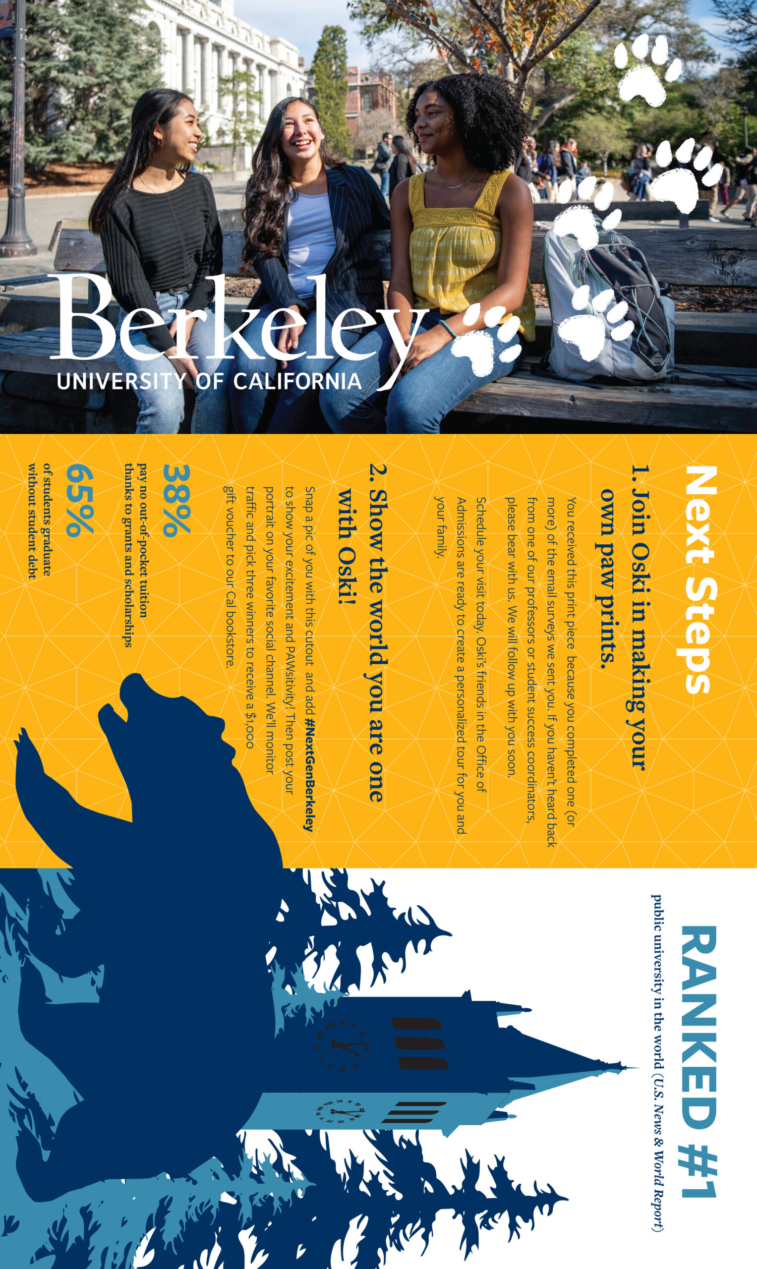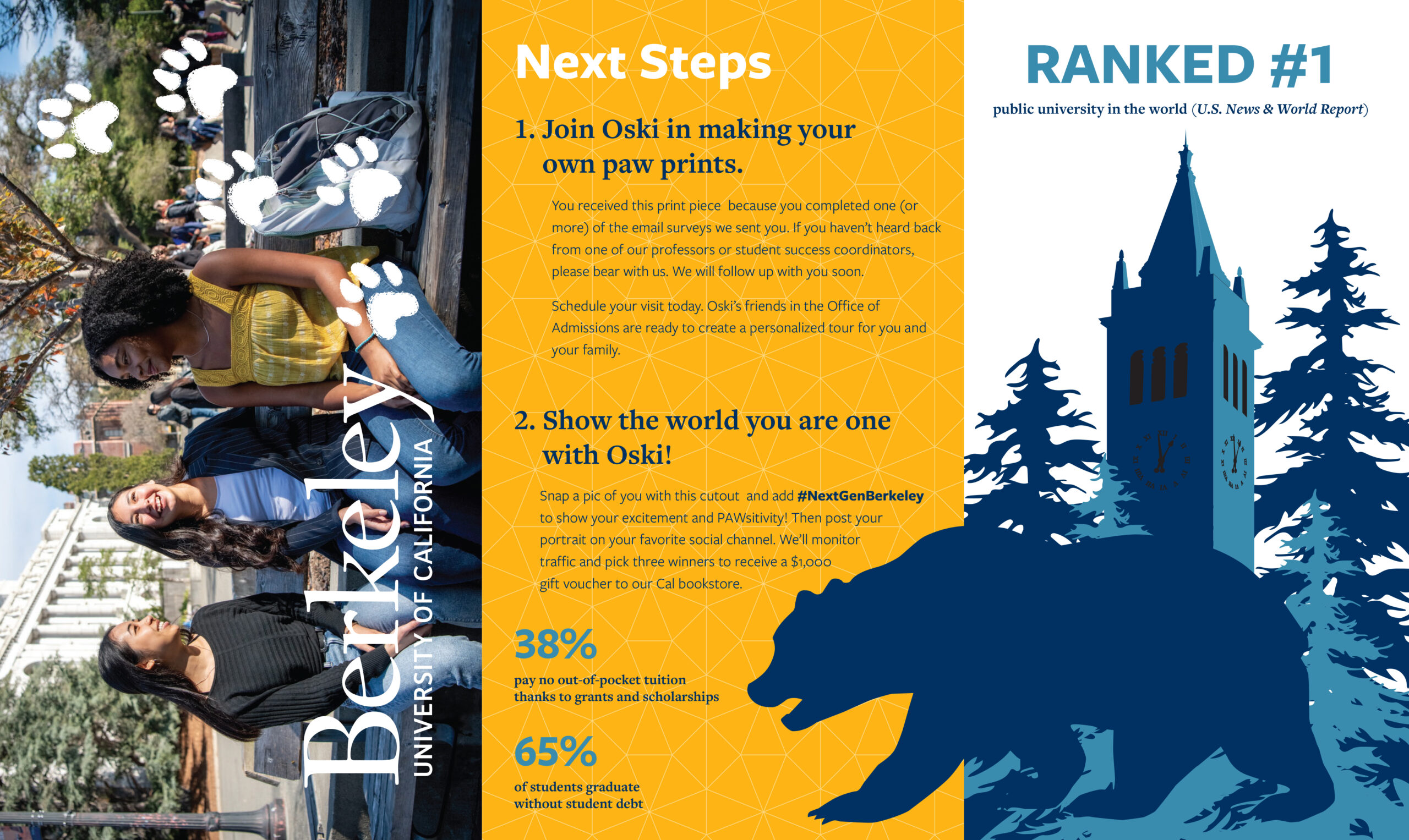 University of California Berkeley Mailer Brochure Print Piece with Mask Insert: Digital Social Ads and Animated Emails: