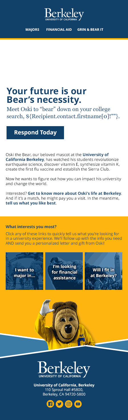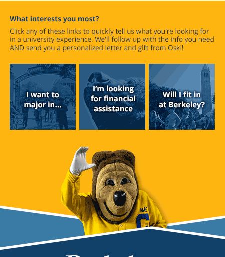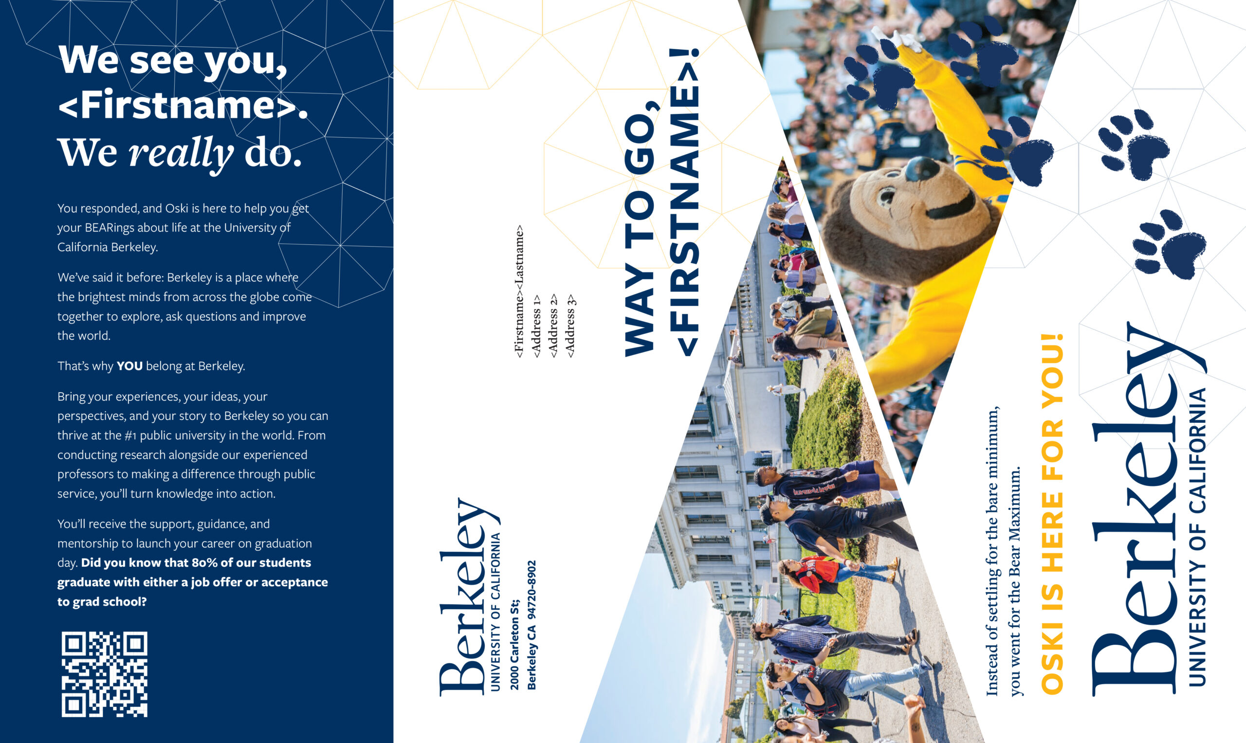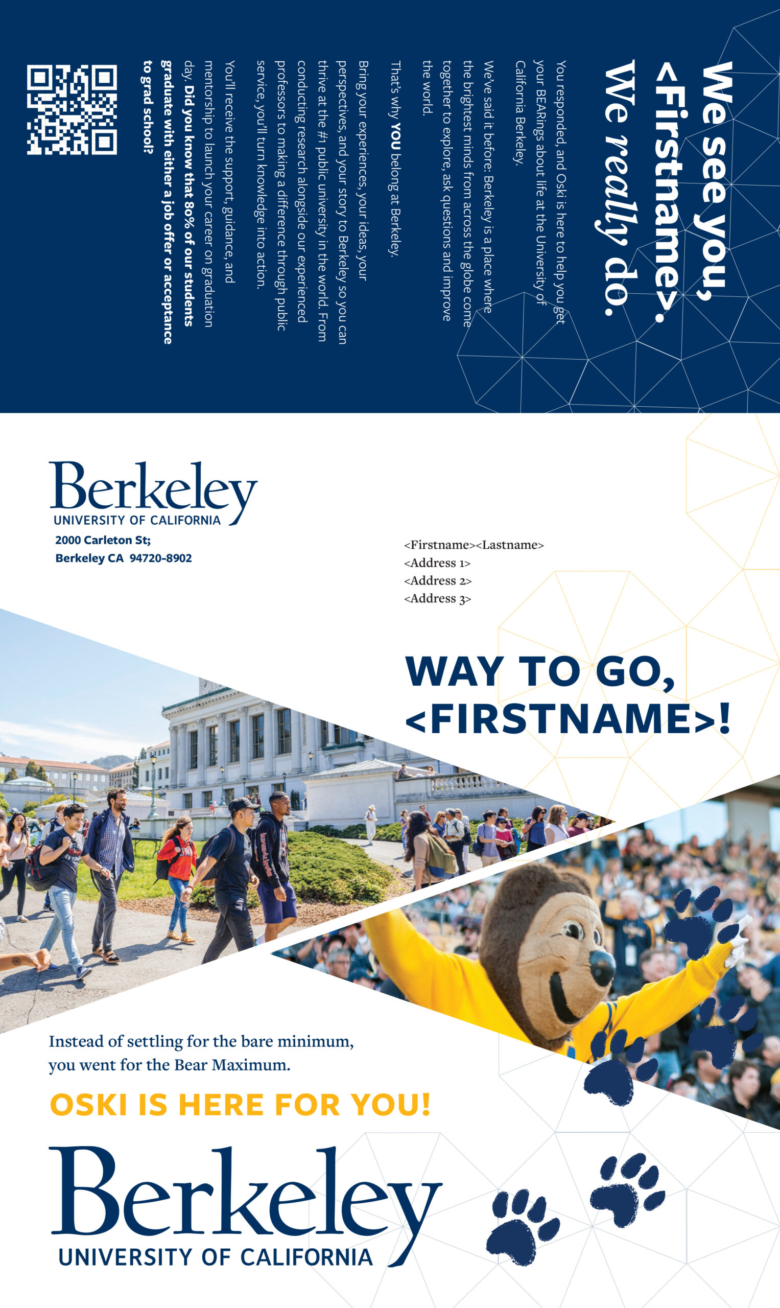University of California Berkeley Mailer Brochure Print Piece with Mask Insert: Digital Social Ads and Animated Emails:
